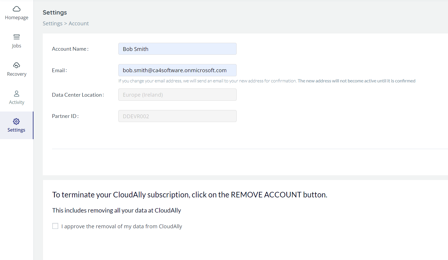 Note that if you terminate your CloudAlly account, the data from all your backups will be deleted.