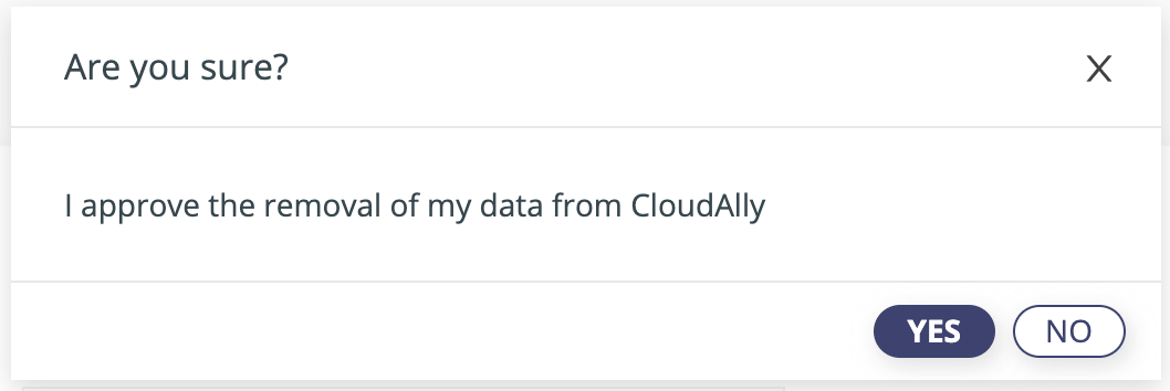 - Select the check box adjacent to "I approve the removal of my data from CloudAlly."